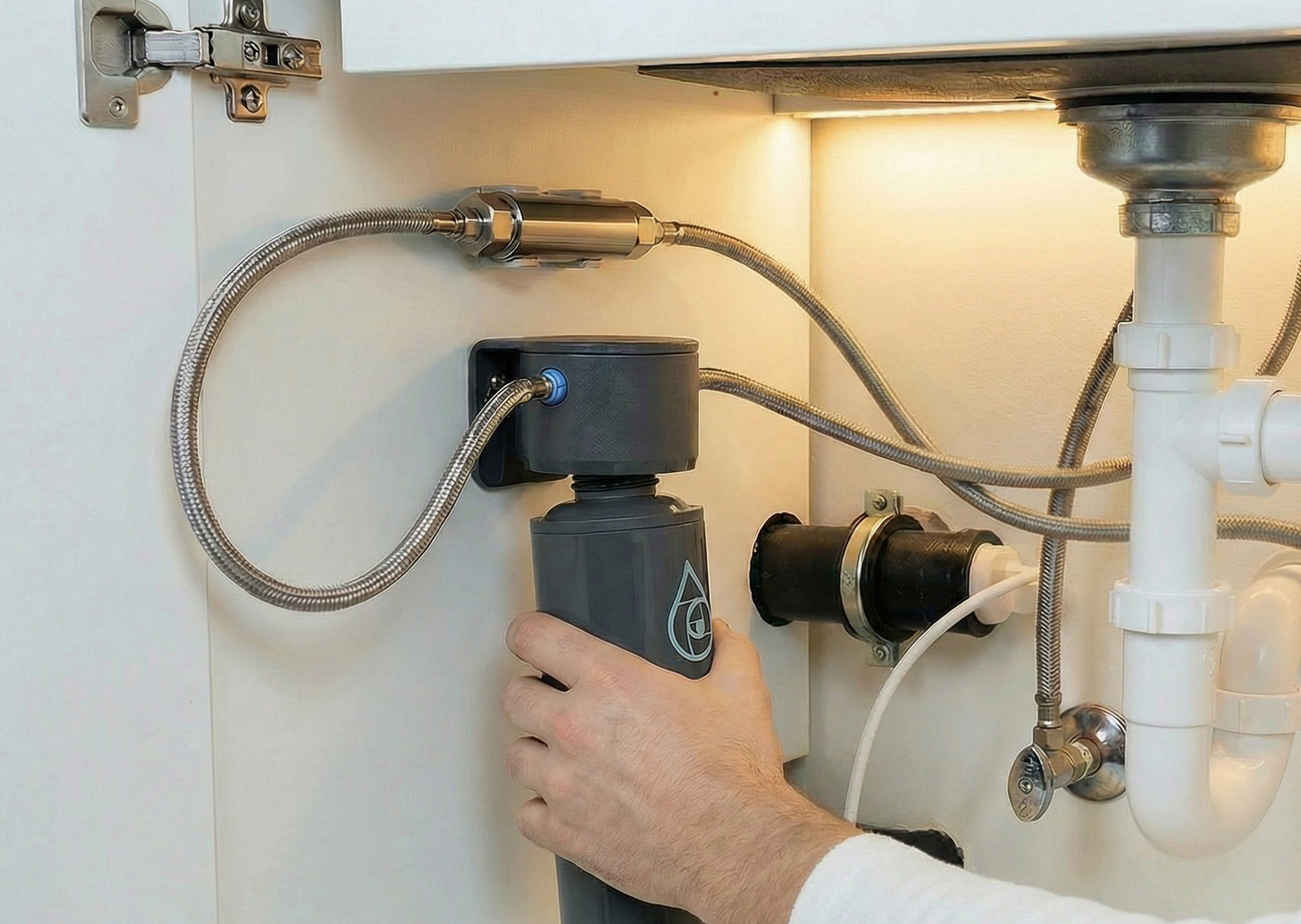 Le nano-drink est un filtre compact sous évier qui débarrasse de manière fiable votre eau potable des substances étrangères telles que les métaux lourds, les microplastiques et les résidus de médicaments. Les minéraux naturels sont préservés. Le système s'installe discrètement sous l'évier et fournit à tout moment de l'eau potable fraîchement filtrée directement au robinet. Idéal pour tous ceux qui apprécient le confort, la qualité et la propreté de l'eau potable au quotidien.