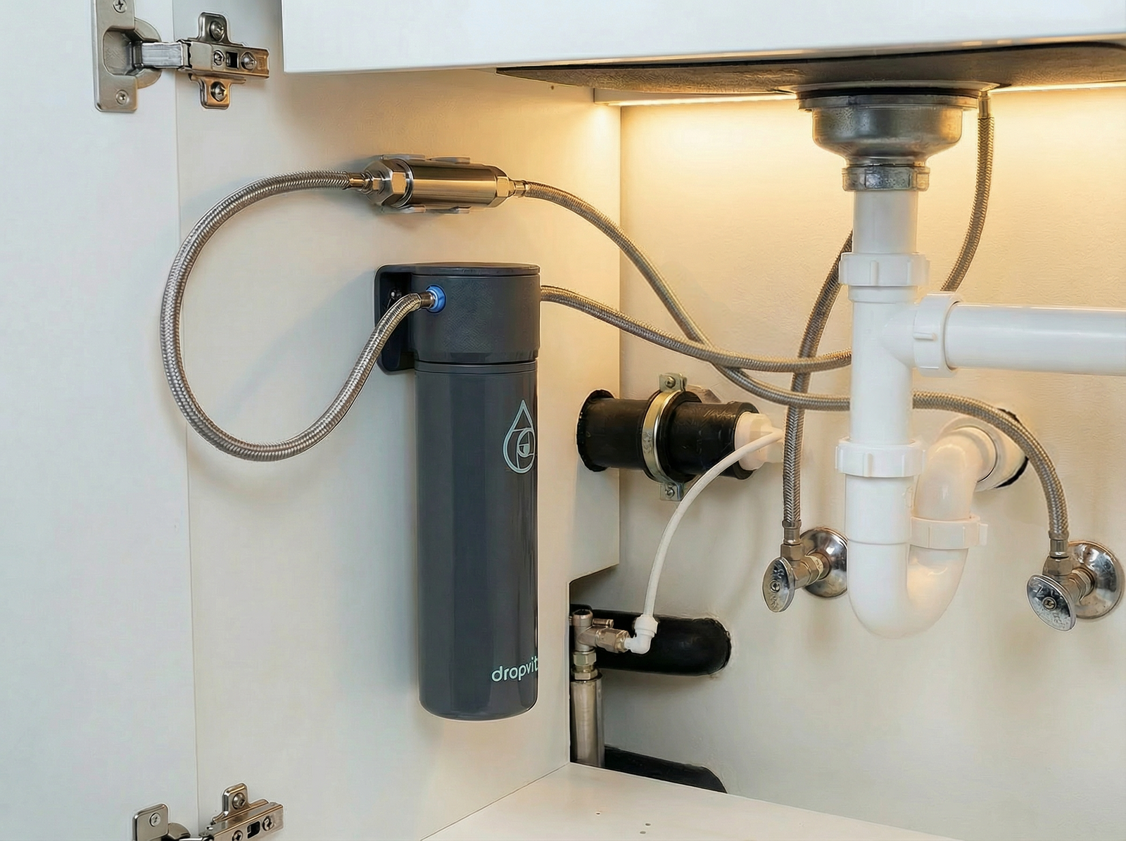 La filtration de base fait partie intégrante de chaque système Dropvital et garantit une eau propre et hygiéniquement sûre. Elle lie de manière ciblée les métaux lourds de l'eau du robinet et la barrière hygiénique intégrée augmente encore la sécurité hygiénique pour des conditions d'eau stables avec un débit d'eau constant et adapté à la vie quotidienne.