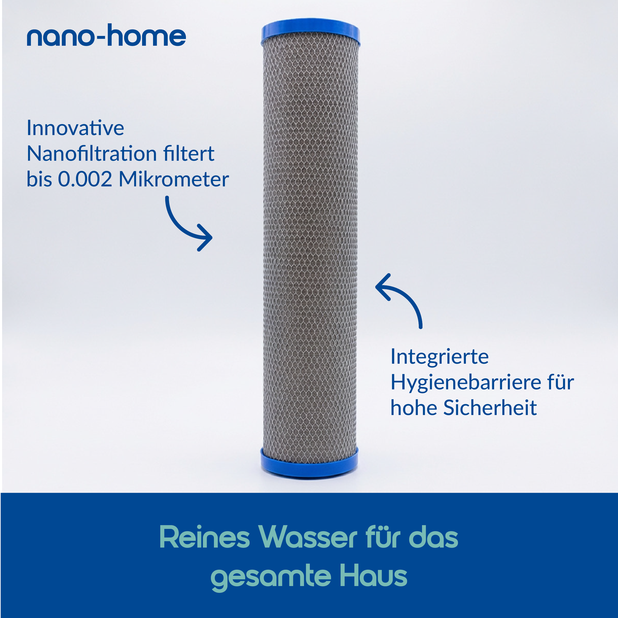 Die Nanofiltration entfernt gezielt Schad- und Fremdstoffe aus dem Hauswasser und wirkt bis in feinste Bereiche. Die Aktivmembran erreicht eine Schadstoffentfernung von bis zu 99% bei einer Filtrationstiefe von 0,002 Mikrometer. Damit schafft die Nanofiltration auch bei konstantem und hohem Wasserdurchfluss eine ausgezeichnete Tiefenfiltration im untersten Nanobereich.