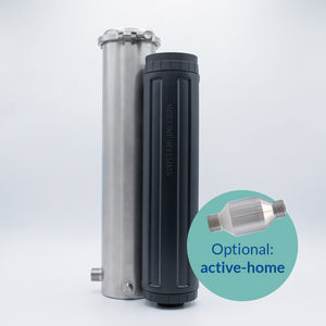 Auf Wunsch kann das Hauswasserset mit dem active-home Wasserveredler ergänzt werden. Das patentierte Rotationsverfahren fördert einen hohen Sauerstoffgehalt im Wasser, harmonisiert seine Struktur und sorgt für ein spürbar sanfteres und wohltuenderes Wassererlebnis im ganzen Haus.